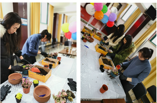 為迎接即將到來的2019年“三八”國際勞動婦女節(jié),調(diào)動女職工工作積極性,豐富女職工生活,使廣大女職工過上一個健康、和諧、快樂的“三八”婦女節(jié)。近日,恒通公司全體女職工與“小鮮肉”們來了一場“神秘”約會,擁抱春的“肉肉”,感受春的氣息。 女職工們擼起袖子,帶上手套,跟著園藝師從灌裝填土、多肉種植、面層鋪石到灑水定型,一步步完成多肉植物DIY制作,并將其帶回辦公室。每一個多肉盆栽“成品”形態(tài)各異,蠢萌可愛。