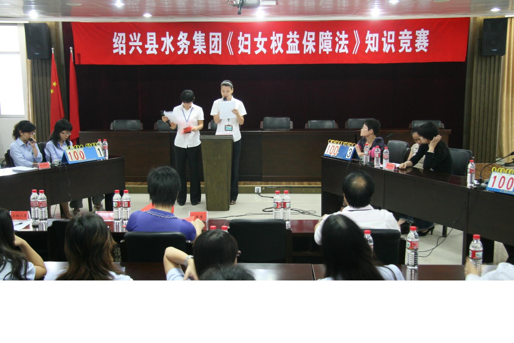 為廣泛深入地學(xué)習(xí)、宣傳、貫徹《中華人民共和國婦女權(quán)益保障法》,提高廣大女職工的法律意識及依法維護(hù)自身利益的能力,在“十一”前夕,水務(wù)集團婦聯(lián)舉辦《中華人民共和國婦女權(quán)益保障法》知識競賽。來自集團機關(guān)、供水、排水、水處理公司婦委會等4支女職工代表隊參加比賽。本次競賽以現(xiàn)場答題形式,分個人必答題、小組必答、搶答題和風(fēng)險題。活動在大家積極踴躍,熱情高漲。經(jīng)過緊張激勵的角逐,最終水處理婦委會榮獲第一名。
